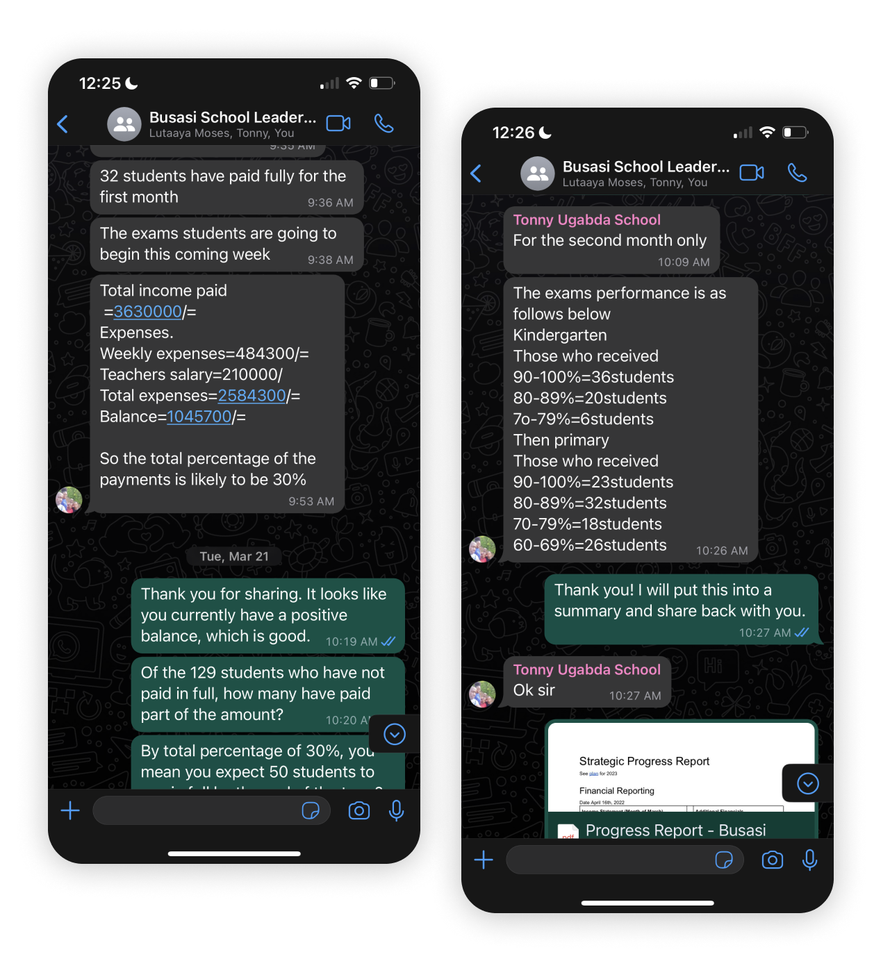July 2023 marked my heartwarming return to Busasi Parents Primary School within the rapidly expanding community in the rural setting of Busasi, 50 km from Kampala. The school greeted me with overwhelming hospitality; the students showcased elaborate performances, including songs that painted a vivid picture of the school's achievements in the last year, including a new water tank, improved security for school grounds, and business training for leadership.Partnership with LIA PrimeLIA Prime's involvement has been pivotal. By offering operational guidance and setting accountability benchmarks, we've ensured the school operates sustainably. Leadership has implemented weekly financial reviews along with required monthly progress reports. By meeting these requirements, access to LIA Prime's short-term financing has addressed cash flow challenges, which previously hampered overall operations.Transparency, being paramount, led the school leadership to share comprehensive financial reports. Impressively, they've registered profits for three consecutive terms, with a surplus of 2M UGX on an 11M UGX budget (~$3000). Sound financial management, combined with financing, has enabled investments in additional classrooms, facilities, and extracurricular activities.Teachers in Uganda are notoriously underpaid, receiving only partial salary often several months past due. Busasi Parents is an exception and takes pride in punctual salary disbursements to their teaching staff. Miyranga Tonny, the school director, reached out after the visit to let me know the teachers had not only been paid in full but were paid a week early! Still, the school aims to improve: Offering consistent monthly salaries, especially during school holidays, to attract the finest educators.About Busasi Parents Primary School